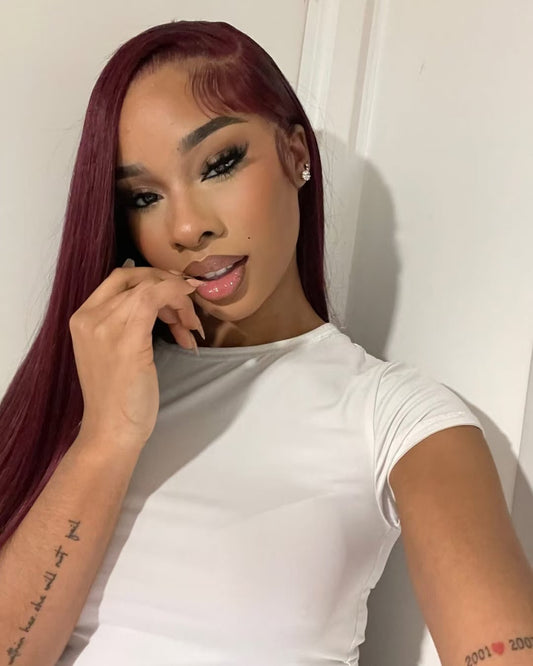 Niki Hair Glueless Left Part 99J# Straight Pre Plucked Lace Frontal Wigs(10018)